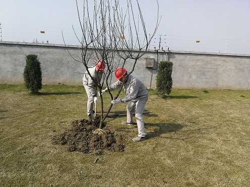 9點30分,植樹小隊到達了庫區(qū)西側的綠地。同志們自帶鐵鍬、手套等工具,大家分工協(xié)作,老同志揮鍬鏟土、年輕的同志提苗扶正,認真做好每一道工序,確保樹苗能夠茁壯成長。經(jīng)過一小時的努力,梨樹、李子樹、桃樹整齊排列,讓原本單一的綠地煥發(fā)了勃勃的生機。