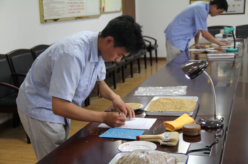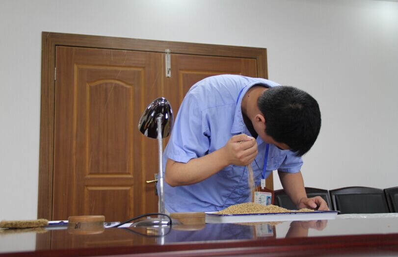 為確保比賽順利進(jìn)行,公司高度重視,以青年文明號(hào)創(chuàng)建工作領(lǐng)導(dǎo)小組為核心,積極做好比賽各項(xiàng)準(zhǔn)備工作。比賽當(dāng)天,12名參賽選手按照抽簽順序依次參賽,在規(guī)定時(shí)間內(nèi),通過(guò)眼看、手抓、鼻聞、牙咬、耳聽(tīng),以及木礱協(xié)助等方式,依次判斷所給4種樣品的品種,以及水分、雜質(zhì)、出糙率、不完善粒等相關(guān)指標(biāo),既檢驗(yàn)操作熟練性,又考驗(yàn)判斷準(zhǔn)確性。比賽過(guò)程中,各位選手各顯神通,老師傅們憑借經(jīng)驗(yàn)優(yōu)勢(shì),精準(zhǔn)判斷;新員工們按照規(guī)范要求,一絲不茍。裁判小組認(rèn)真核定每一位選手的判斷指標(biāo),細(xì)致觀(guān)察操作過(guò)程是否符合規(guī)范要求,并逐一進(jìn)行打分。經(jīng)過(guò)兩個(gè)多小時(shí)的角逐,鮑春良、王維、高佳佳三位同志分獲一、二、三等獎(jiǎng)。