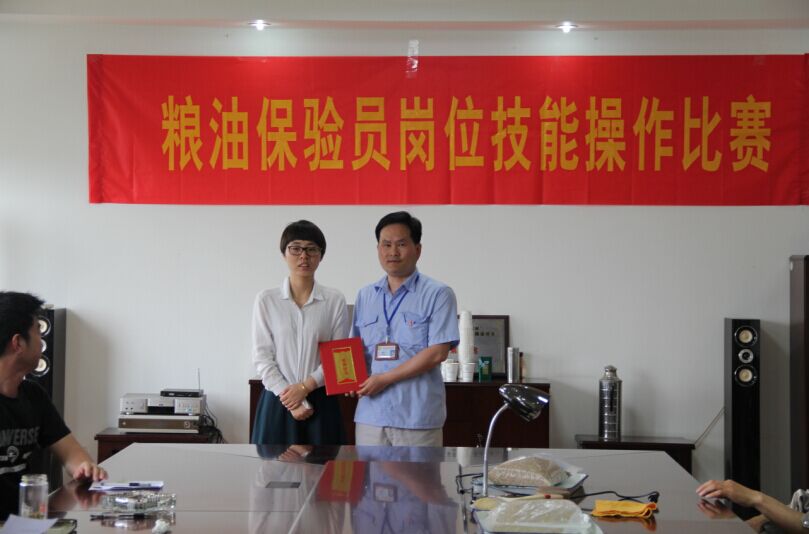 比賽結(jié)束后,公司創(chuàng)建青文號(hào)工作領(lǐng)導(dǎo)小組組長(zhǎng)沈巧林同志作了賽后點(diǎn)評(píng),建設(shè)街道、市糧食局及公司領(lǐng)導(dǎo)分別為獲獎(jiǎng)選手頒獎(jiǎng)。