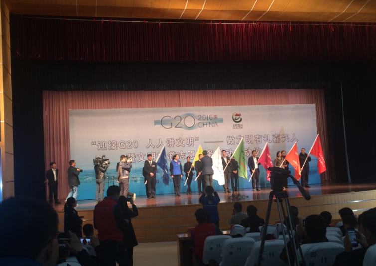 此次文明旅游志愿服務(wù)活動(dòng),由省文明委牽頭、全省聯(lián)辦,嘉興作為一個(gè)分會(huì)場(chǎng)由嘉興市委宣傳部、市文明辦等6部門主辦。啟動(dòng)儀式上,市委宣傳部、市文明辦相關(guān)負(fù)責(zé)人為志愿者服務(wù)隊(duì)代表授旗,并宣布“迎接G20人人講文明——做文明有禮嘉興人”暨文明旅游志愿服務(wù)活動(dòng)啟動(dòng);顒(dòng)指出,今年9月,G20領(lǐng)導(dǎo)人峰會(huì)將在杭州舉辦,我們每個(gè)人的一言一行、一舉一動(dòng),都將直接關(guān)系到整個(gè)浙江的文明風(fēng)采,關(guān)系到整個(gè)中國(guó)的文明形象。同時(shí)要求,志愿服務(wù)活動(dòng)要把握活動(dòng)重點(diǎn),豐富活動(dòng)載體,確保取得實(shí)效。我公司將以此次活動(dòng)為契機(jī),同時(shí)結(jié)合公司文明單位建設(shè)和青年文明號(hào)創(chuàng)建,進(jìn)一步抓好為農(nóng)服務(wù)和科技儲(chǔ)糧推廣等特色志愿服務(wù),從自身領(lǐng)域出發(fā),為文明嘉興、文明浙江作出應(yīng)有的貢獻(xiàn)。