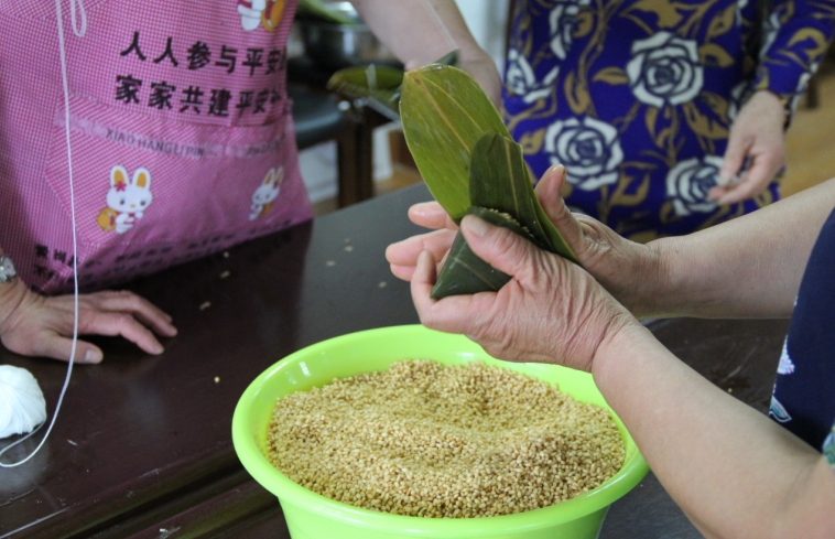 “粽包分兩髻,艾束著危冠!庇值搅艘荒暌欢鹊亩宋缂压(jié),6月3日,嘉興市糧食收儲有限公司走進(jìn)聯(lián)建單位百福弄社區(qū),與社區(qū)居民和社區(qū)工作人員一道開展了一次裹粽子比賽。