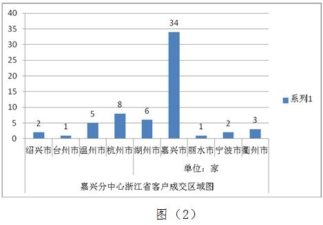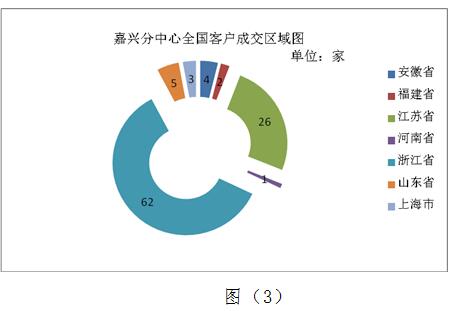 嘉興分中心成立之初,每場(chǎng)參與網(wǎng)上競(jìng)拍的單位約6-7家,隨著嘉興分中心日益成熟運(yùn)行模式和良好的服務(wù)態(tài)度,與嘉興分中心合作的企業(yè)已從嘉興市地域輻射到浙江省8個(gè)市(如圖2),且不滿(mǎn)足于此,將交易半徑逐漸輻射到上海市、江蘇省、山東省、福建省、安徽省、河南省等地(如圖3)。