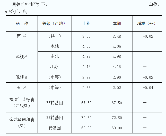 嘉興糧油價格信息