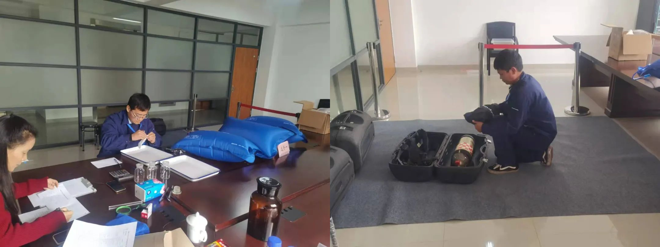 10月22日,在我公司中心糧庫開展了糧油倉儲管理員組儲糧通風機參數(shù)測定及風機配置合理性評價和佩戴正壓式空氣呼吸器檢查氣調(diào)儲糧殺蟲效果兩個項目,糧油質量檢驗員組試樣稱重和稻谷脂肪酸值測定兩個項目的實操比賽。