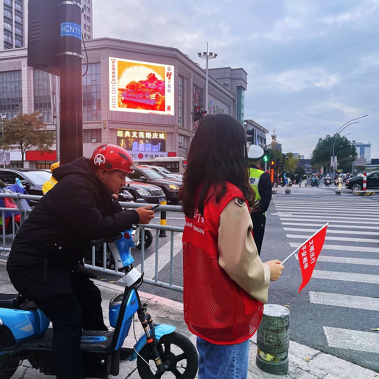 維護(hù)文明和諧的交通秩序是創(chuàng)文提質(zhì)升級(jí)的重要內(nèi)容,也是做實(shí)做好黨史學(xué)習(xí)教育“我為群眾辦實(shí)事”實(shí)踐活動(dòng)的關(guān)鍵舉措。連日來,在嘉興的眾多路口都出現(xiàn)了一批身著紅色馬甲的志愿者,他們?yōu)榱说缆方煌ǖ陌踩行,不辭辛苦、任勞任怨,默默貢獻(xiàn)著自己的力量。參與此次活動(dòng)的嚴(yán)雪芳表示:“作為一名共青團(tuán)員,我在今年剛剛遞交了入黨申請(qǐng)書,參與此次文明勸導(dǎo)志愿服務(wù)也算是與自己初心的一次‘對(duì)話’。從年初遞交申請(qǐng)書到現(xiàn)在,我深刻感知著我們黨始終堅(jiān)守著‘為人民服務(wù)’的宗旨,在各類為人民謀幸福、為民族謀復(fù)興的事業(yè)上貢獻(xiàn)著力量,這對(duì)我而言無疑是自豪的。我也將堅(jiān)定自己的理想信念,凡事走在前列,從基礎(chǔ)做起、從小事做起,以自己的行動(dòng)向黨組織一步步靠攏!