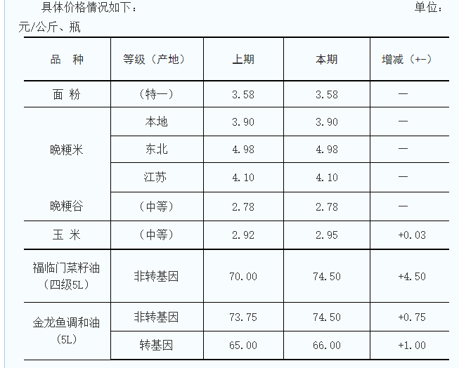 據(jù)監(jiān)測,2022年3月1日~3月15日,市區(qū)糧油銷量平穩(wěn),供應(yīng)數(shù)量充足。原糧晚粳稻加工企業(yè)采購報價穩(wěn)定,大米出廠價格平穩(wěn);面粉市場批發(fā)價格近期穩(wěn)定;飼料玉米價格持續(xù)高企、市場供應(yīng)價格上漲;在前期食用油市場行情普遍上漲帶動情況下,監(jiān)測品種福臨門菜籽油、金龍魚調(diào)和油等品牌食用油調(diào)高了市場供應(yīng)批發(fā)價格。